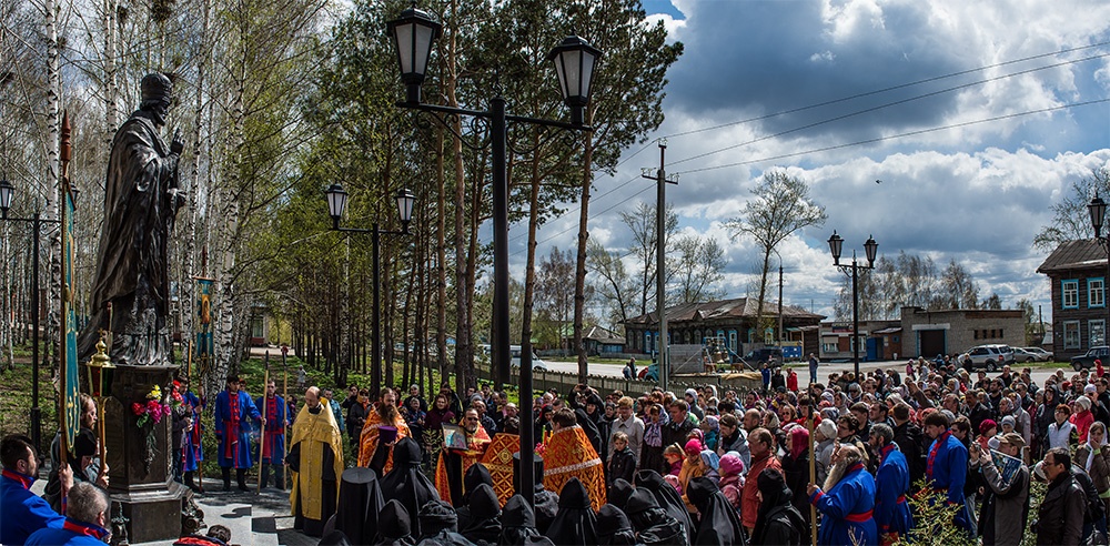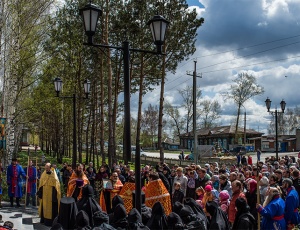 В субботу состоялся крестный ход, который прошел по улицам поселка от Покровского Александро-Невского женского монастыря до памятника святителю Николаю, где состоялся краткий молебен.