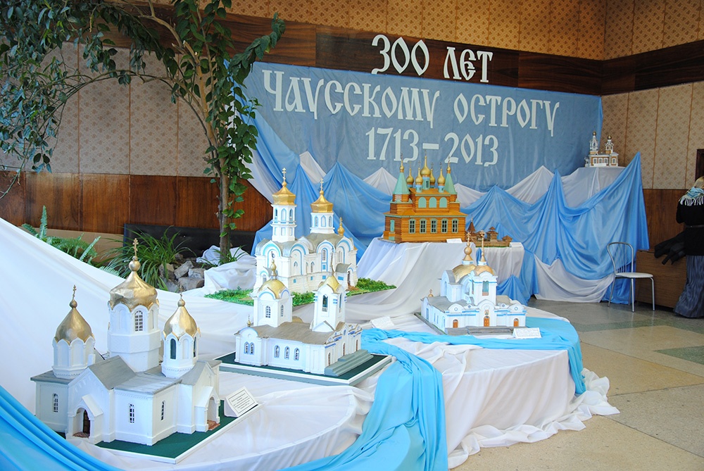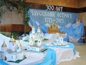 Чуть позже в фойе Дома культуры «Юность» все желающие могли увидеть нобычную выставку «Духовное освоение Сибири», представленную фондами трех музеев: Новосибирской Митрополии, Сибирского центра колокольного искусства и Колыванского краеведческого музея.