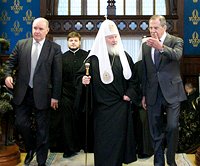 во встрече приняли участие: с церковной стороны - председатель отдела внешних церковных связей московского патриархата митрополит волоколамский иларион, председатель отдела московского патриархата по взаимоотношениям церкви и общества протоиерей всеволод чаплин, председатель синодального информационного отдела в.р.легойда, заместители председателя овцс протоиерей николай балашов и игумен филипп (рябых), секретарь овцс по межправославным отношениям священник игорь якимчук, секретарь овцс по делам дальнего зарубежья священник сергий звонарев, исполняющий обязанности секретаря овцс по межхристианским отношениям священник димитрий сизоненко; со стороны российского внешнеполитического ведомства - заместитель министра, статс-секретарь мид г.б. карасин, директора департаментов мид и послы по особым поручениям.