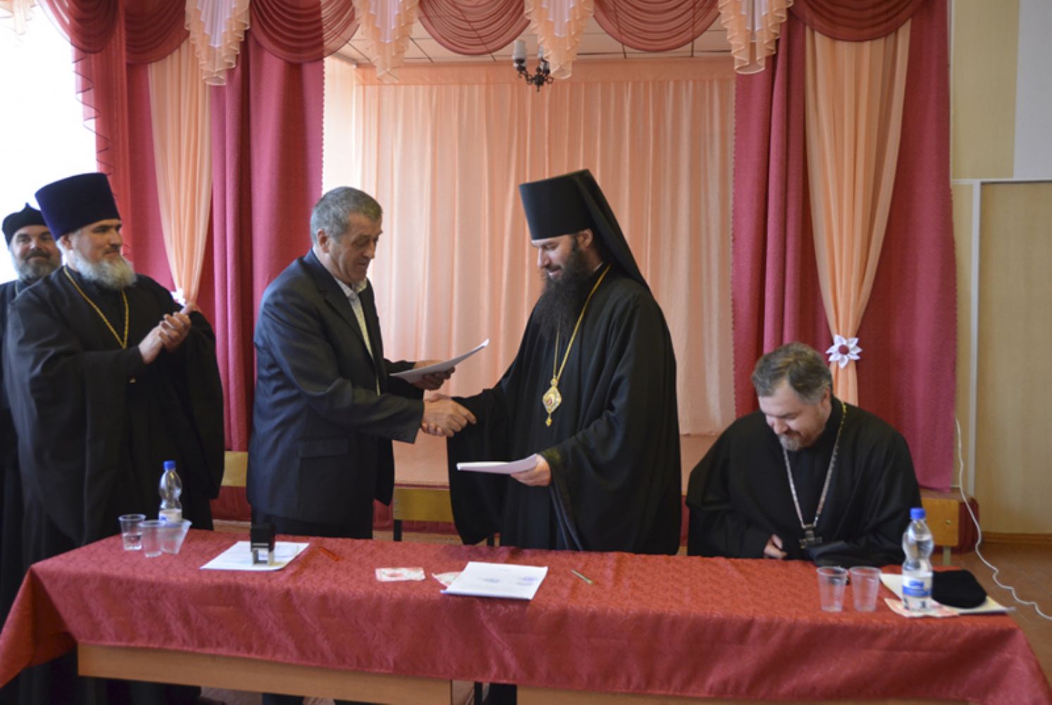Состоялось подписание Соглашения о сотрудничестве Орской епархии и Кваркенского районного отдела образования в организации духовно-нравственного и патриотического воспитания подрастающего поколения. Это очередной шаг в осуществлении стратегии епархии по укреплению взаимоотношений с местными властями.
