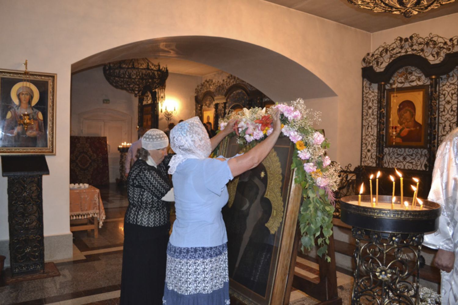 Пятый год подряд крестный ход начинается от собора св. праведного Иоанна Кронштадтского. В день праздника в нижнем храме с любовью украшают цветами огромного размера список Табынской иконы, готовя его к шествию в Херсон, с благоговением прикладываются к святому образу. Так было и в этом году.