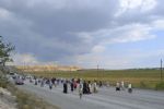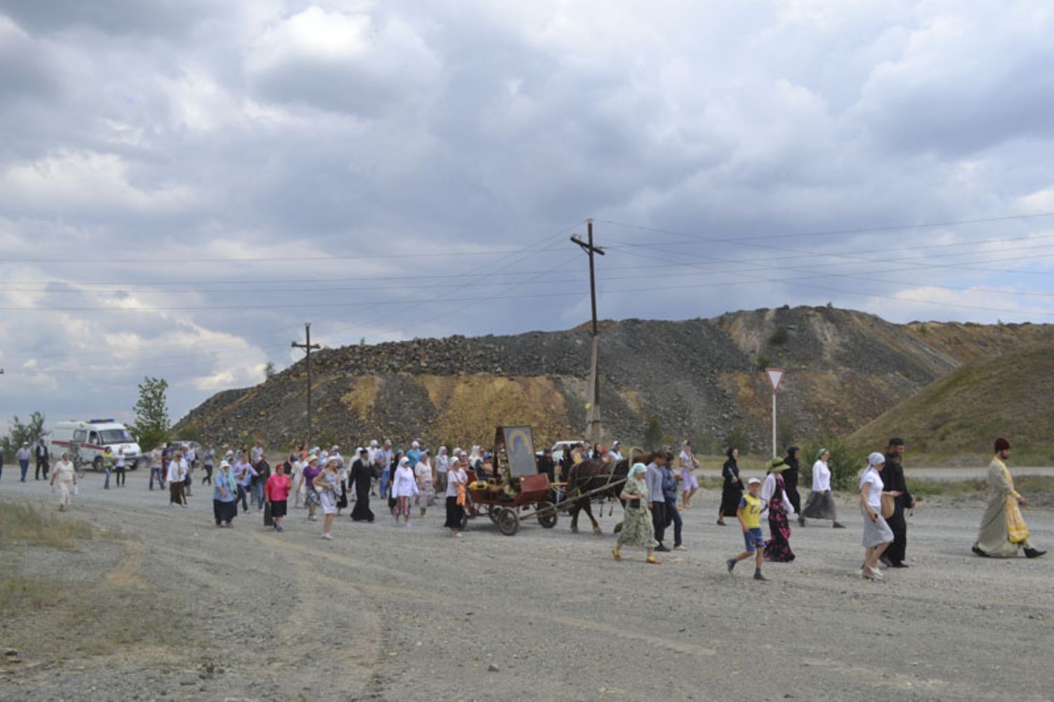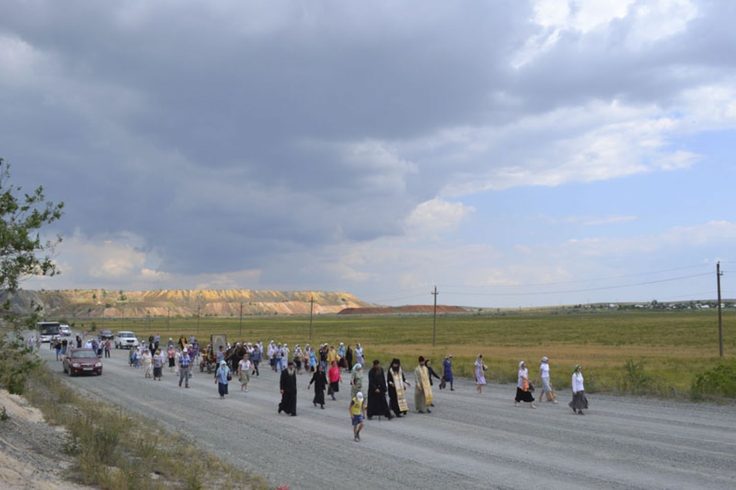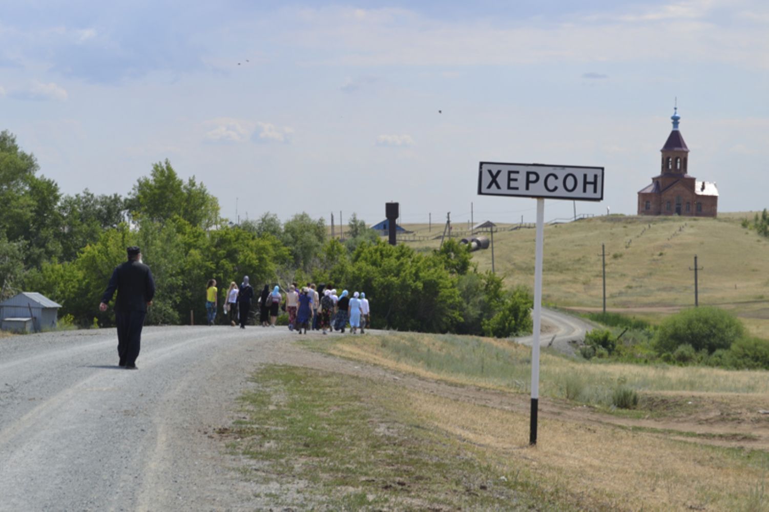 Несколько километров икону продолжали нести на руках, а за городом установили на повозку, запряженную лошадью. Вскоре прибыл и возглавил шествие Преосвященнейший Ириней, епископ Орский и Гайский. До этого владыка уже прошагал немало километров с крестным ходом по улицам Орска. Его появление на гайской земле также вдохновило людей, прибавило сил. Всю дорогу не смолкали песнопения. Люди молились, чтобы милость Божия не оставляла их. Двигаться в течение четырех часов по дальней каменистой дороге, усеянной галькой и булыжниками и все время идущей на подъем, было непросто, но с Божией помощью до Херсона все добрались благополучно.