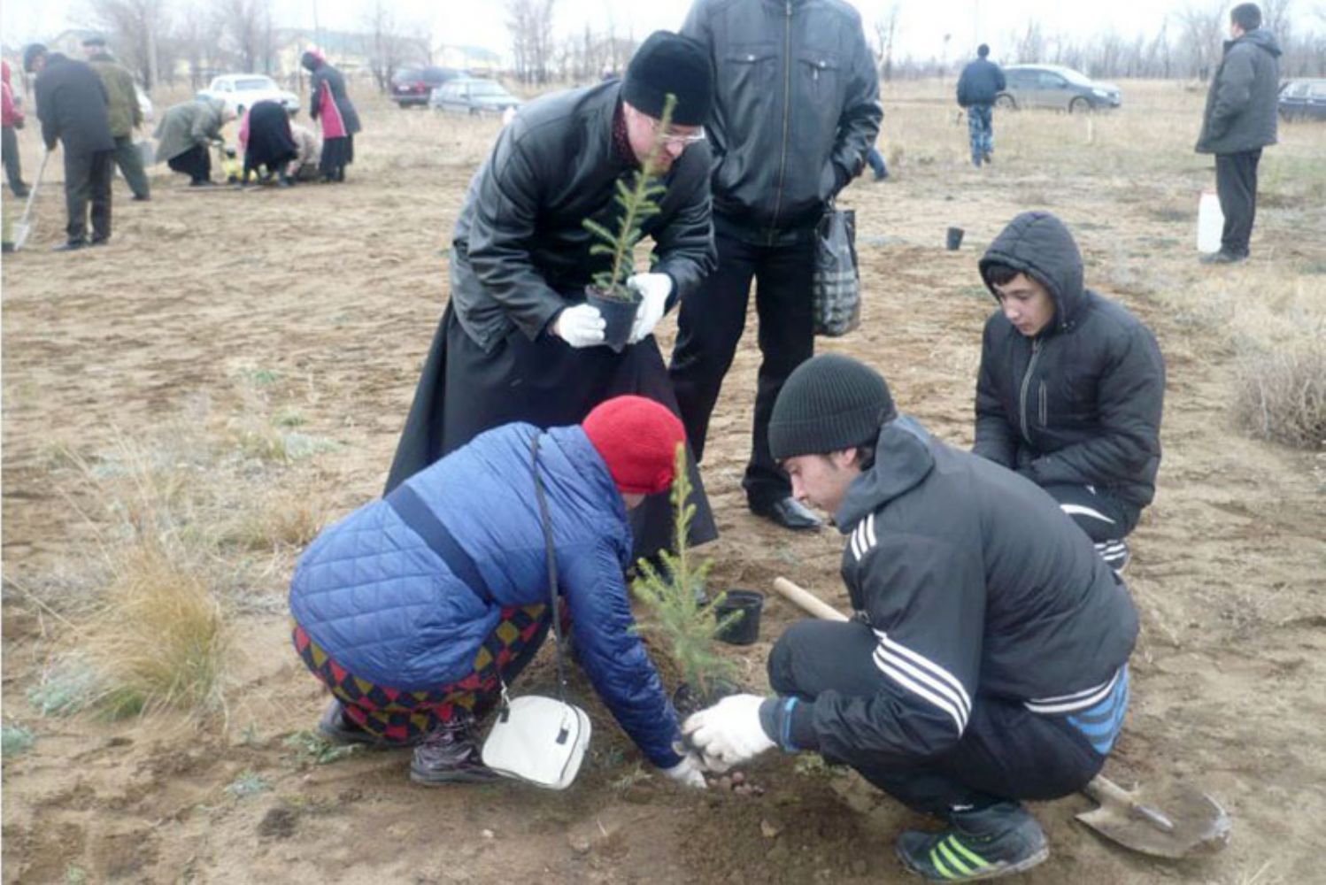 В воскресный день после Божественной литургии епископ Орский и Гайский Ириней возглавил посадку 150 елочек неподалеку от строящегося Иверского женского монастыря.