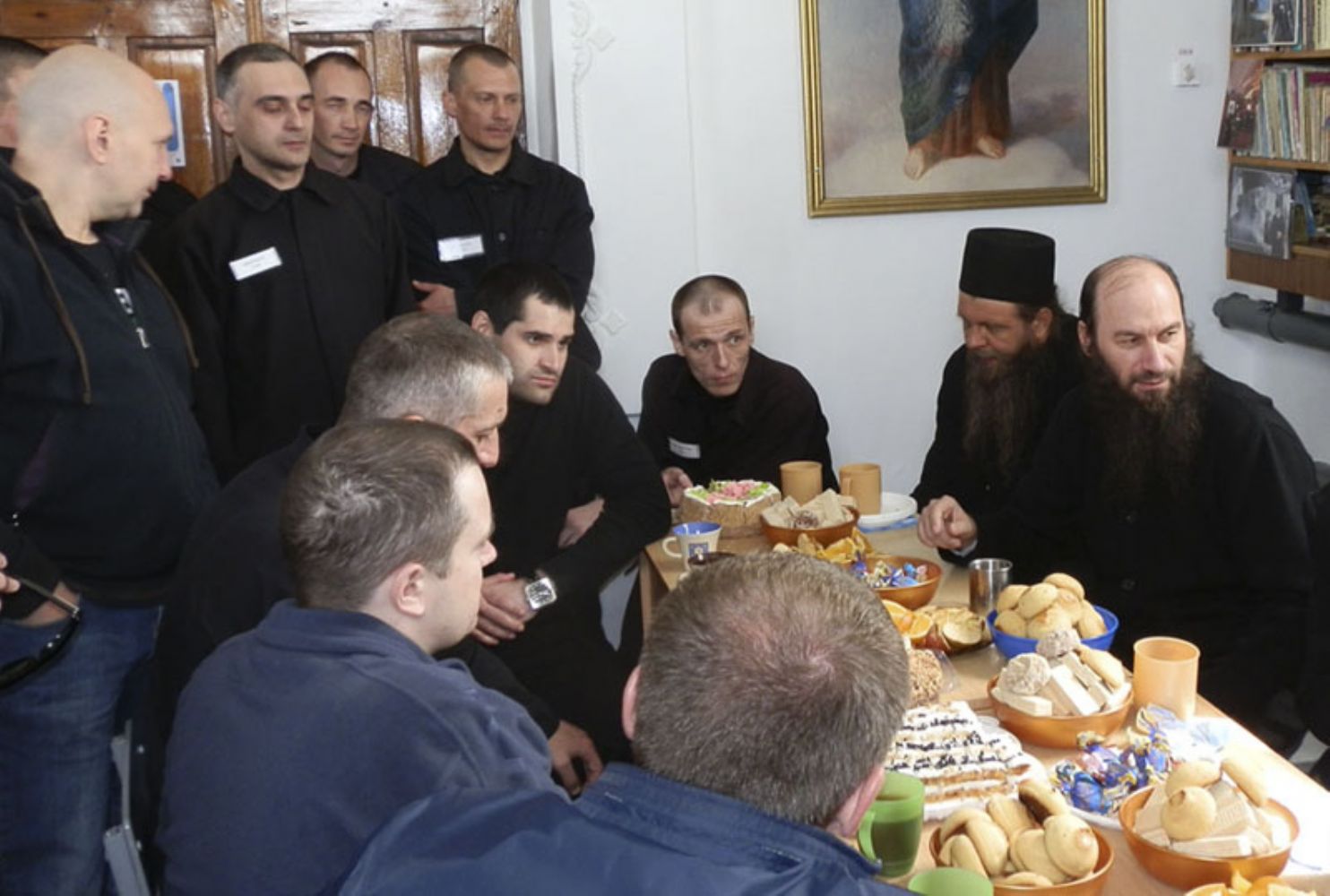 Его преосвященству сослужил секретарь епархии протоиерей Сергий Баранов. За богослужением молились гости из Греции – афонские монахи отец Никодим и отец Павлин, пребывающие в Орской епархии, а также верующие заключенные.