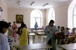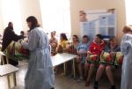 Его Преосвященство сопровождали настоятель храма св. прмцц. вел. кн. Елисаветы ст. Губерли, клирик собора свв. апп. Петра и Павла г. Новотроицка иерей Максим Бражников, настоятель храма Покрова Пресвятой Богородицы с. Кумака иеромонах Феодор (Липкин), сотрудник отдела по делам православной молодежи Вячеслав Котлов, а также матушка Светлана и Арсений Солонины. Желанные гости преподнесли подарки 70 мамам, которые родили или должны родить в ближайшие дни, и поздравили всех с Днем православной молодежи.