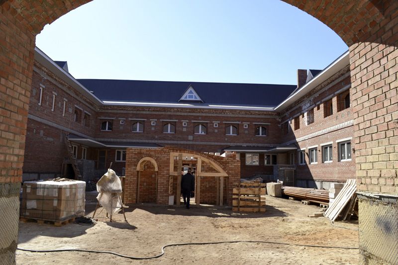 В помещении монастыря расположился храм во имя Иверской иконы Божией Матери. А вторую небольшую церковную постройку уже начали возводить во дворе, с четырех сторон окруженном монастырскими стенами. Сюда и направились участники крестного хода.