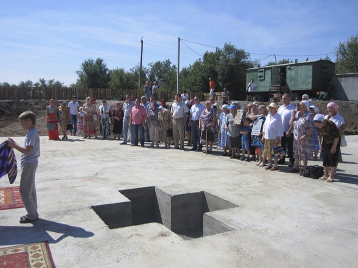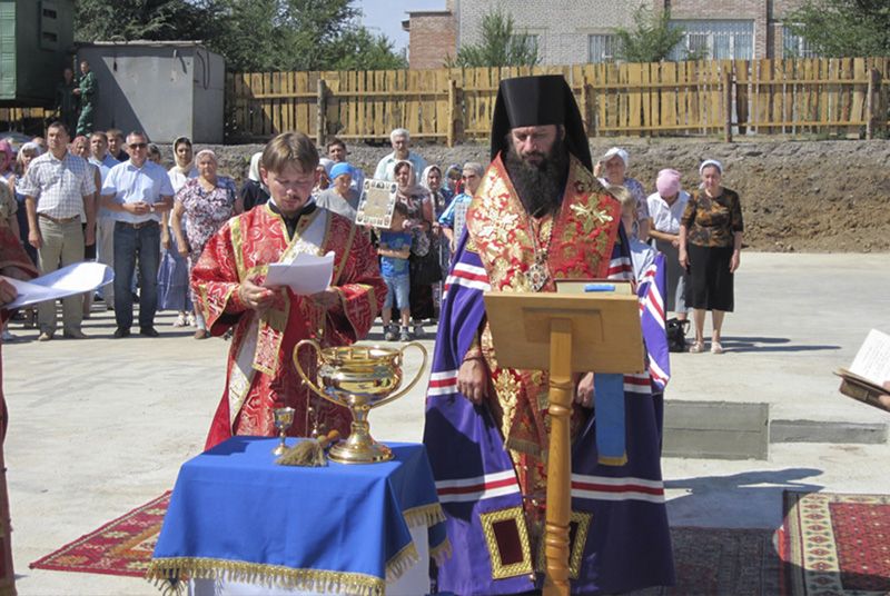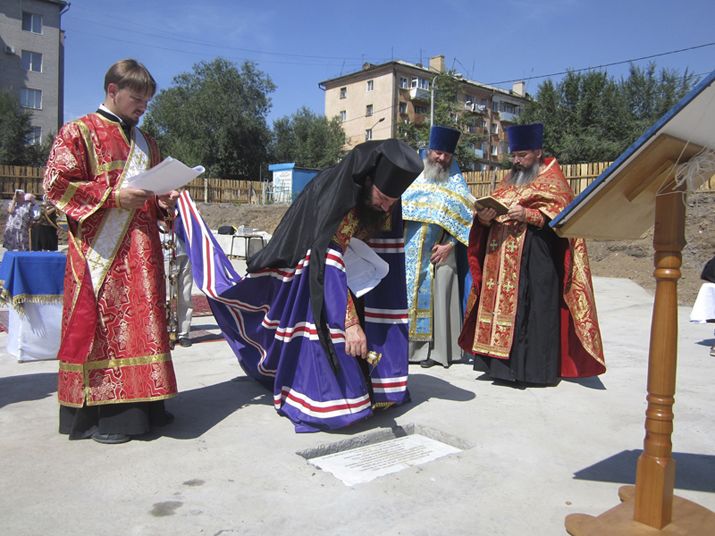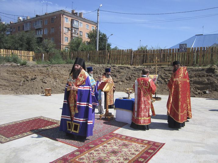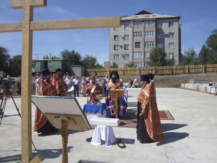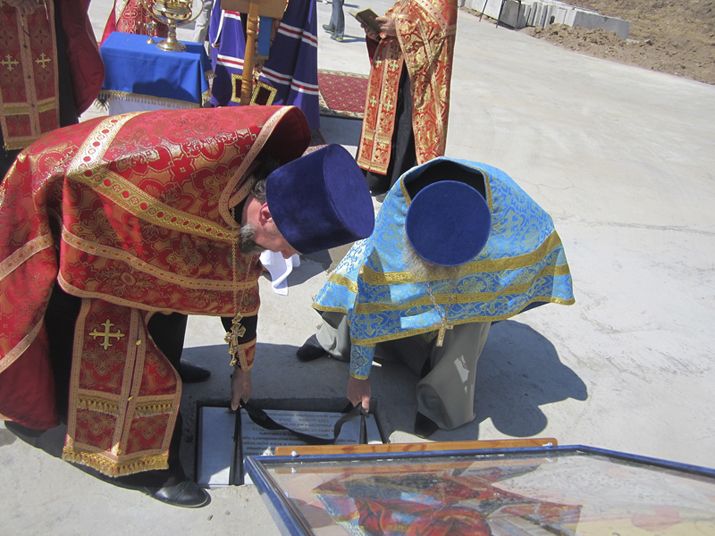 Епископ Ириней совершил чин закладки первого камня в основание храма в честь Благовещения Пресвятой Богородицы. Его Преосвященству сослужили: секретарь Орской епархии, настоятель кафедрального собора св. вмч. и Победоносца Георгия г. Орска протоиерей Сергий Баранов; духовник Орской епархии, благочинный Кувандыкского и Медногорского округов, настоятель храма Покрова Пресвятой Богородицы г. Кувандыка протоиерей Симеон Антипов; клирик храма прп. Симеона Столпника (Введения во храм Пресвятой Богородицы) на Поварской г. Москвы протоиерей Димитрий Солонин; настоятель храма прп. Сергия Радонежского иерей Сергий Дынник; клирик кафедрального собора св. вмч. и Победоносца Георгия г. Орска диакон Григорий Сычев.