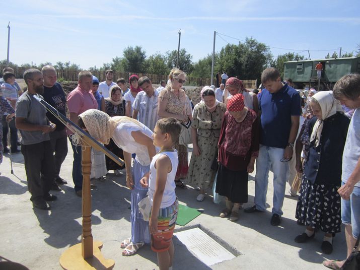 В жаркий летний день в центре города за памятником «Вечно живым» на улице Фрунзе было многолюдно. Верующие жители города собрались на радостное для них событие – закладку первого камня в фундамент строящегося храма Благовещения Пресвятой Богородицы г. Новотроицка. Пришли и бабушки, и молодые родители с детьми. Лица прихожан светились радостью, ведь для жителей Новотроицка это настоящий праздник: скоро будет выстроена церковь, а колокольный звон станет возвещать на всю округу о вере православной. Не обошли вниманием это значимое событие и журналисты различных СМИ.