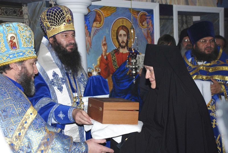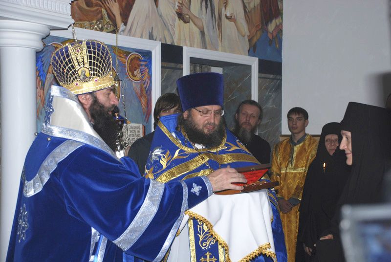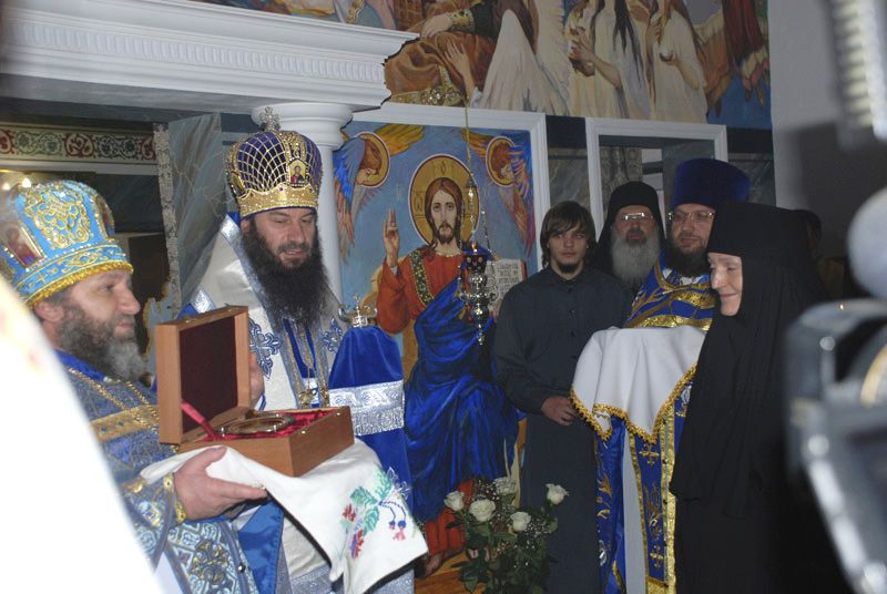 Сегодня просторный храм Иверской иконы Божией Матери едва вмещал в себя всех пришедших разделить радость праздника. По окончании Литургии владыка Ириней поздравил всех с торжеством: «Мы сегодня со слезами на глазах, с радостными чувствами прославляем Творца и благодарим Его и Пречистую Богоматерь за эту милость.Дорогой отец Сергий и дорогая матушка Ксения, дорогие отцы, братья и сестры! Воистину мы сегодня собрались здесь, где ликует наше сердце. Мы радуемся, что увидели плод вознесенных молитв.Сегодня мы увидели плод тех людей, которые жертвуют свои средства на эту обитель. Невозможно было себе представить в прошлом году, что сегодня будем стоять здесь, а храм не сможет вместить всех желающих. Благодарим в этот день о. Сергия, м. Ксению за труды ивсех сестричекза вознесенные молитвы: на протяжении не одного года совершается ночная Литургия и возносится молитва, которая услышана Богом, и Матерь Божия покровительствует этому месту. Сегодня день Иверской иконы, память о великом поступке царя Алексея Михайловича. Мы также посвятили наш монастырь этому образу, чтобы Сама Пречистая была вратарницей нашего города и нашей епархии».