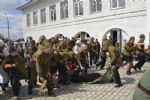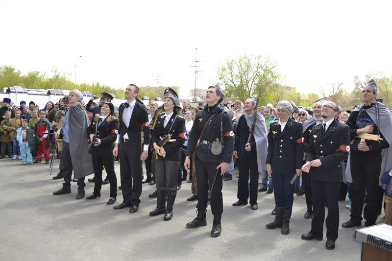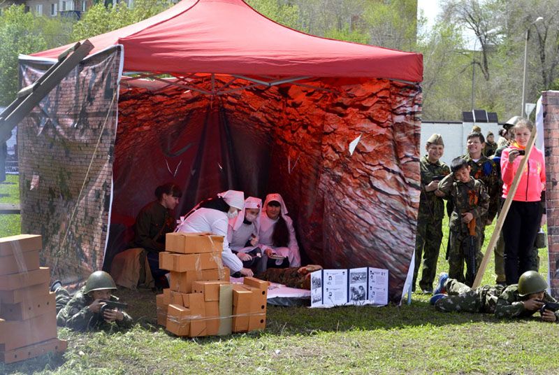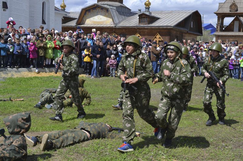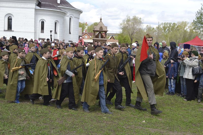 Наверное, около тысячи человек собрались на территории Свято-Георгиевского собора, чтобы принять участие в грандиозном мероприятии. Сюда съехались воспитанники и преподаватели почти всех воскресных школ Орской епархии: Орска, Новотроицка, Гая, Медногорска, Хабарного. То и дело встречались солдаты в советской форме и в немецкой, сестры милосердия и другие персонажи. По всему было видно, что мероприятию предшествовала большая, серьезная подготовка: это и тщательно подготовленные костюмы, и красочные баннеры, и муляжи кирпичных кладок, и многое-многое другое.