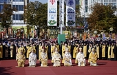 Патриарший экзарх всея Белоруссии митрополит Минский и Слуцкий Филарет, приветствуя Предстоятелей и иерархов Поместных Православных Церквей, сказал: «Мы представляем собой живую икону вселенского Православия». В своем слове митрополит Филарет свидетельствовал о страданиях и гонениях, которые выпали в XX веке на долю Русской Церкви, пережившей незнакомый ей прежде период массового мученичества: «Именно Беларусь гонители желали сделать опорой атеистического государства, вот почему глубоко символично, что эта земля, израненная социальными катастрофами и войнами, в итоге празднует 1025-летие Крещения Руси», — подчеркнул митрополит Филарет.