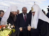 В аэропорту Соловков Предстоятеля Русской Православной Церкви встречали митрополит Архангельский и Холмогорский Даниил, наместник Соловецкого монастыря архимандрит Порфирий (Шутов), губернатор Архангельской области И.А. Орлов, главный федеральный инспектор по Архангельской области В.Н. Потапенко, заместитель губернатора Архангельской области по развитию Соловецкого архипелага Р.В. Балашов, глава муниципального образования «Сельское поселение Соловецкое» Е.В. Амброче.