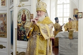 За Литургией были вознесены сугубые молитвы о пострадавших от наводнения на Дальнем Востоке: «о еже услышати Господу Богу глас молитвы нашея и помиловати нас, и укротити стихию водную в восточных пределах Отечества нашего, и утешити народ страждущий», «о еже укрепити труждающихся во спасение людей от водного нашествия».