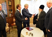 Михаил Ежель вручил владыке экзарху от имени Президента Украины Виктора Януковича орден «За заслуги» III степени.
