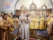 После сугубой ектении Святейший Патриарх Кирилл вознес молитву о мире на Украине.