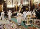 Его Святейшеству сослужили епископ Подольский Тихон, председатель Синодального отдела по церковной благотворительности и социальному служению епископ Орехово-Зуевский Пантелеимон, ключарь Храма Христа Спасителя протоиерей Михаил Рязанцев, руководитель Службы протокола Патриарха Московского и всея Руси протоиерей Андрей Милкин, клирики Храма Христа Спасителя, духовенство г. Москвы.