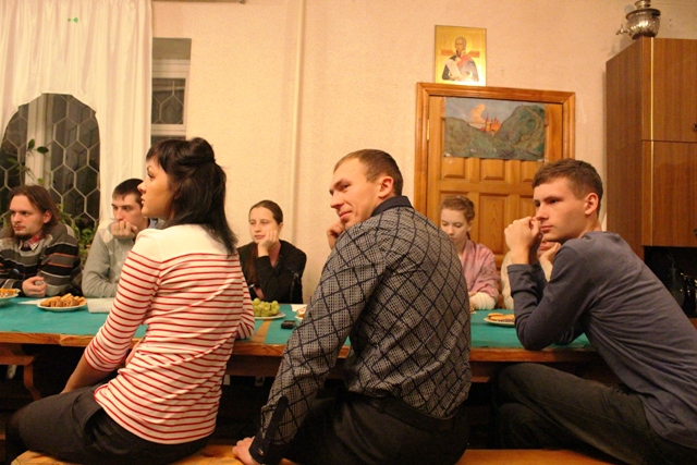 Православные молодые люди обсудили проект документа «О подготовке ко Святому Причащению», выработанный Межсоборным присутствием Русской Православной Церкви. Как известно, подобные обсуждения проходят сейчас во всех епархиях. Клирик Благовещенского храма Симбирска иерей Феодор Сивак, сопредседатель Симбирского Православного Молодежного Движения, в начале обсуждения напомнил присутствующим, что именно участие в Божественной Литургии и Причащение Святых Христовых Таин делает крещеного человека не на словах, а на деле христианином. Совершив подробный экскурс в историю Церкви, отец Феодор озвучил основные принципы подготовки ко Святому Причащению (пост, исповедь, молитвенное участие в храмовом богослужении) как в первые века христианства, так и в период более поздний. Также он сказал и о современной практике подготовки к Причащению в разных Поместных Церквях.