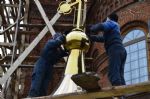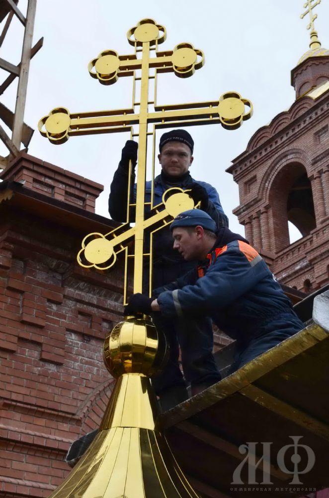 В этот день на храм Архангела Михаила были водружены пять новых куполов из нержавеющей стали с нитрид-титановым напылением. «Работа творческая, требует особой усидчивости и старания, - сказал руководитель челябинского предприятия «Вертикаль» Геннадий Федоркин. - Но как всякая работа на благо Церкви, приносит большое моральное удовлетворение».