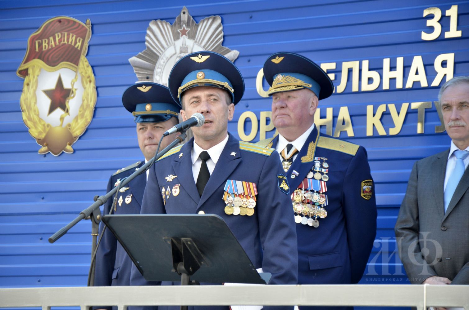 «У вас сегодня День рождения у всех. Бригада десантников Симбирской земли является не только примером, это по-настоящему щит нашего Отечества. Не надо много говорить, достаточно посмотреть на вас, стоящих в строю. Глядя на ваши лица становится ясно, что нам не страшен никакой враг. У нас есть такие парни в голубых беретах, которые в любое время в любом месте могут оказаться там, где надо, чтобы защитить свою Родину.
