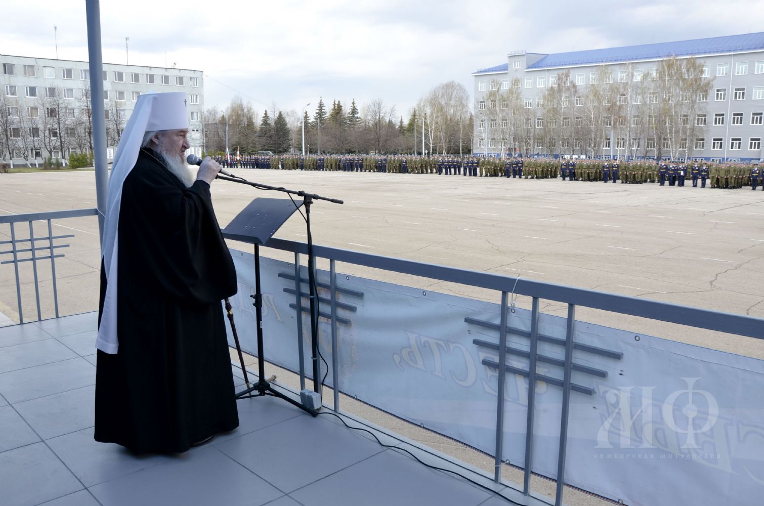 Перед началом торжественного построения личного состава, Митрополит Феофан, в сопровождении первых лиц, посетил храм святого пророка Илии, расположенный на территории соединения, где совершил краткий молебен.