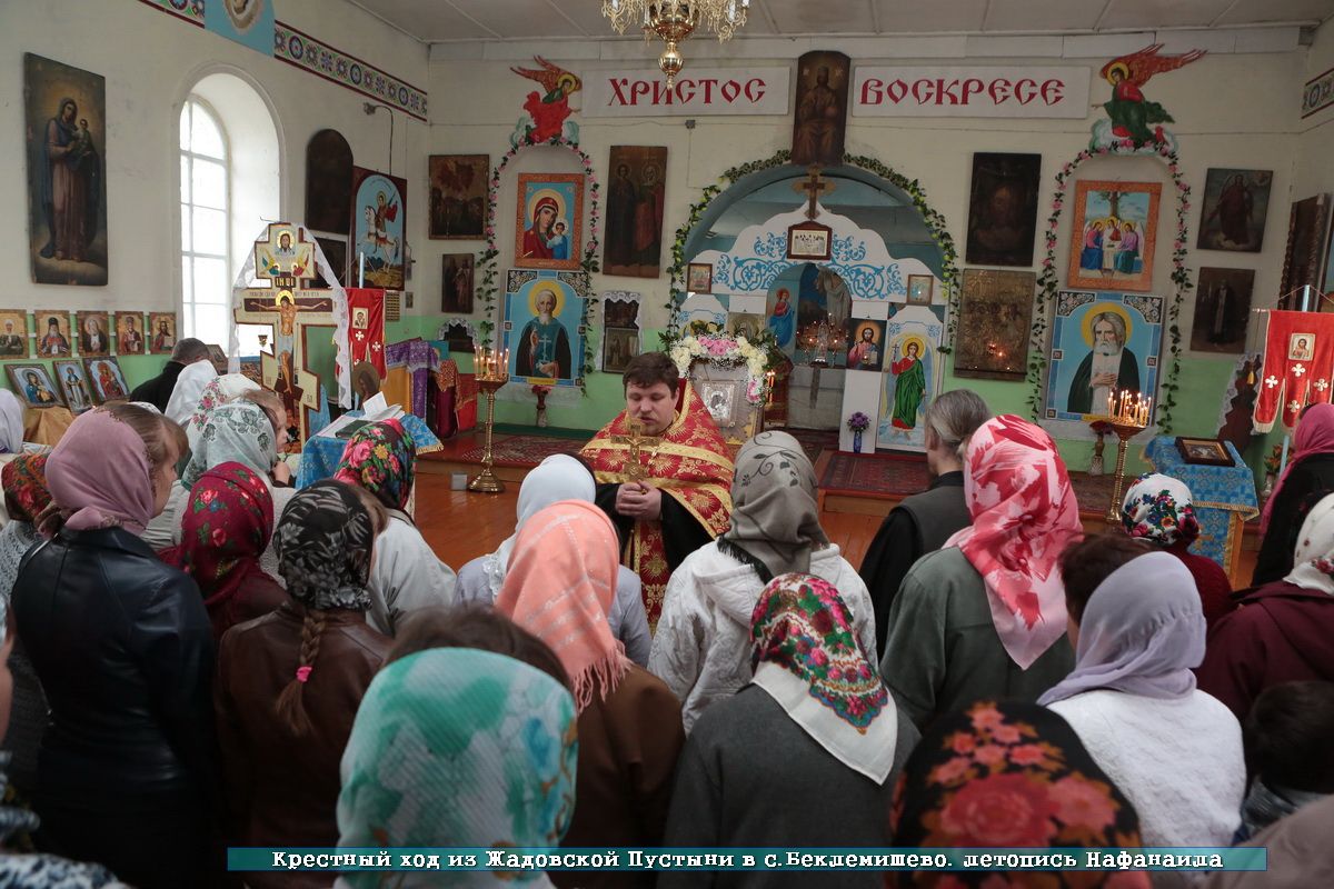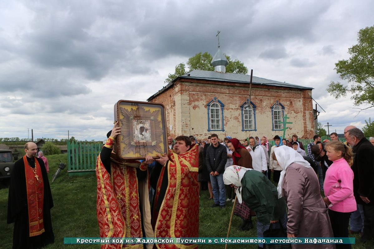 Утром из Свято-Борогодице Казанского Жадовского мужского монастыря, где в настоящее время находиться икона, с молитвой крестный ход направился в путь по населенным пунктам Ульяновской области.