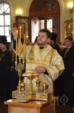 По окончании всенощного бдения Предстоятеля Русской Православной Церкви приветствовал митрополит Симбирский и Новоспасский Феофан.