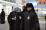 Первым Владыка Анастасий осмотрел Храм всех святых, расположенный на территории храмового комплекса Спасо-Вознесенского собора и приложился к мощам небесного покровителя губернии, Блаженного Андрея Симбирского. От лица духовенства Главу митрополии приветствовал епископ Мелекесский и Чердаклинский Диодор: