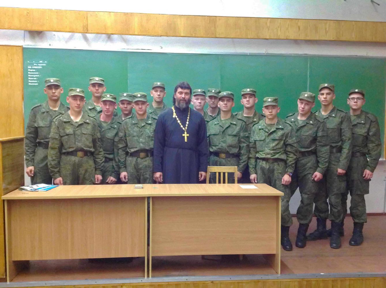 Беседу с новым призывом военнослужащих провел клирик Воскресенско-Германовского храма, игумен Серафим (Ляхов). Данное учебное заведение министерства обороны России священнослужитель курирует, начиная с 2005 года, когда там еще располагалось Ульяновское Высшее Военное Училище Связи.