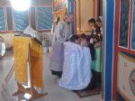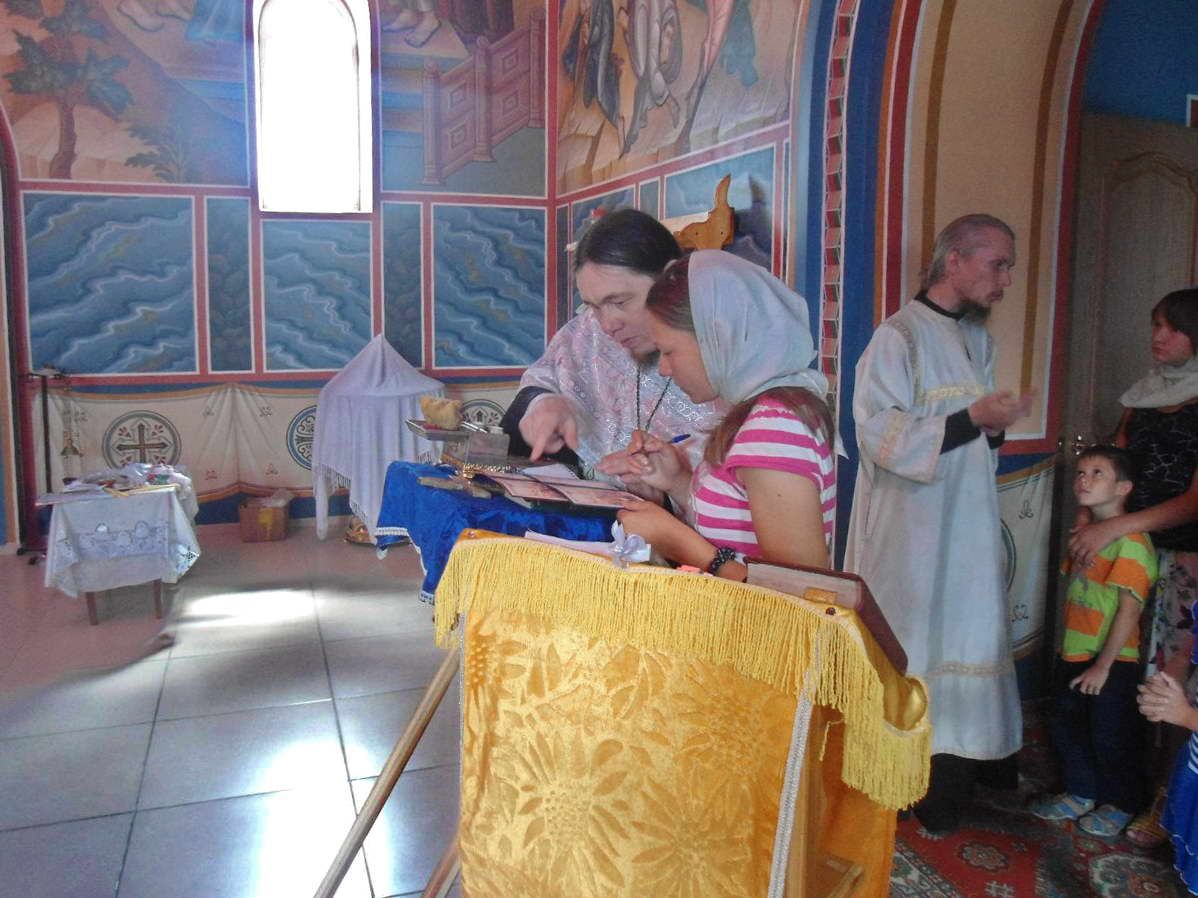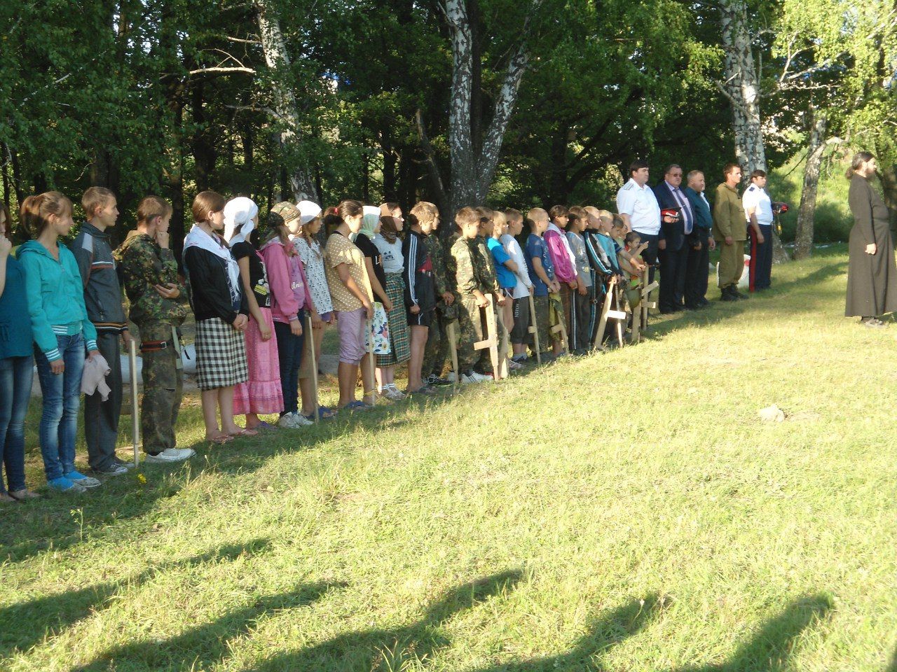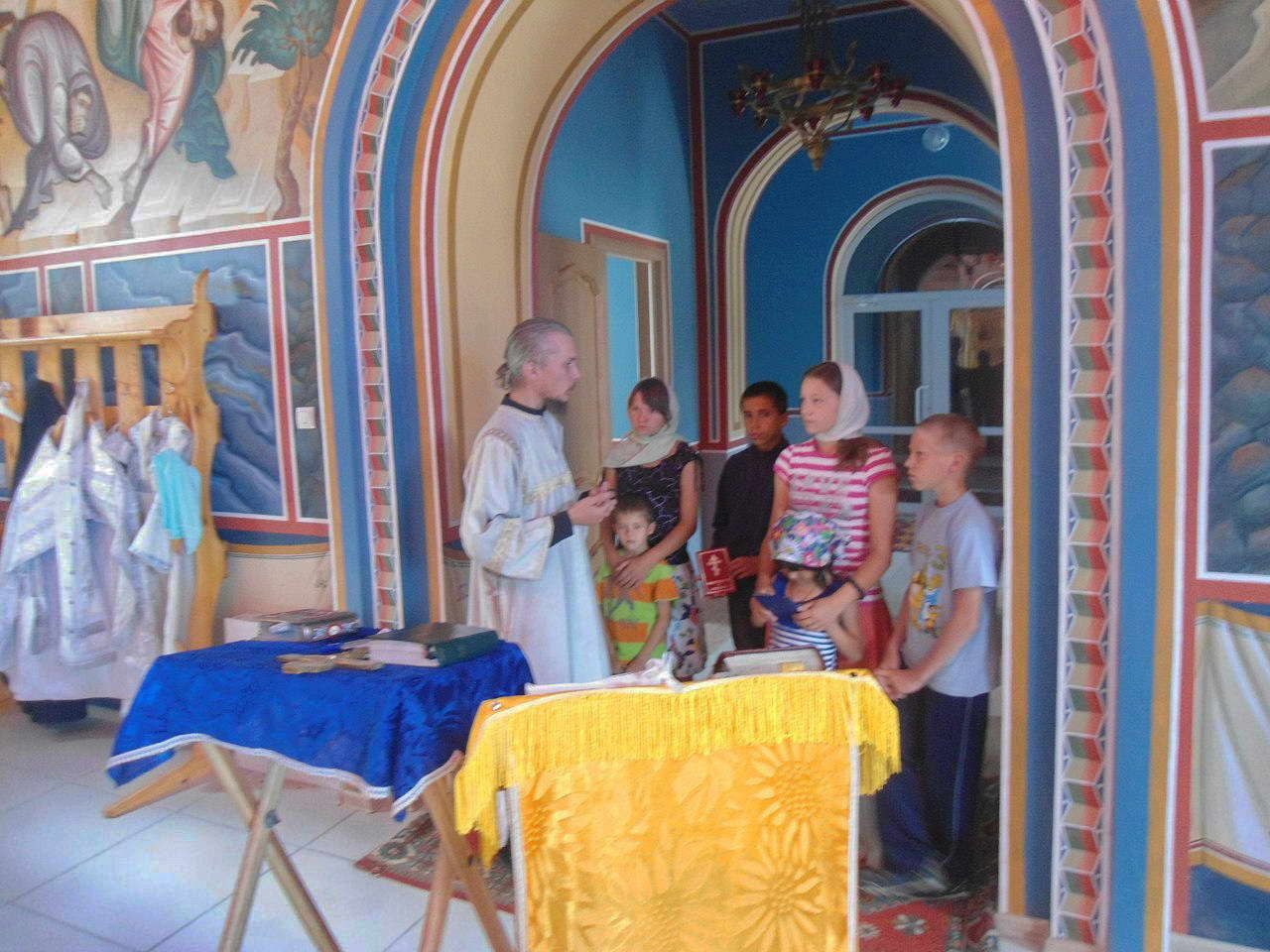 В последний день лагеря двое самых маленьких воспитанников детского дома «Гнездышко», принимавших участие в полевом выходе, брат и сестра Хусулины Ангелина и Дмитрий, приняли Православную Веру. Крестились ребята по собственному желанию. Таинство было совершено монахами Жадовской обители. Крестными стали ребята старших групп.