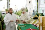 Богослужение состоялось на соборной площади обители, у раки с честными мощами преподобного Серафима, принесенными из Свято-Троицкого собора.