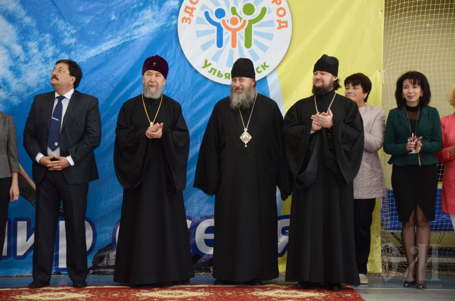 5 сентрября в рамках юбилейной «Волны здоровья» в Ульяновском государственном университете прошел региональный студенческий спортивный фестиваль «Готов к труду и обороне». Поприветствовать участников мероприятия, направленного на популяризацию здорового образа жизни, пришли министр здравоохранения Ульяновской области Павел Дегтярь, заместитель Главы администрации города по социальным вопросам Ольга Мезина, заслуженный мастер спорта по фигурному катанию, призер Олимпийских игр, двукратная чемпионка мира и семикратная чемпионка Европы Ирина Слуцкая. В торжественной церемонии открытия фестиваля и в закладке аллеи «Волна здоровья» также приняли участие архипастыри Симбирской митрополии.