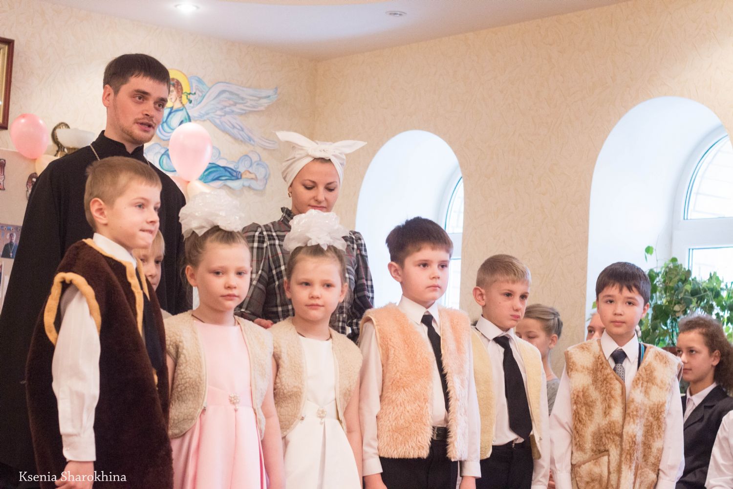 Подготовкой праздника занималась руководитель воскресной школы Валентина Григорьевна Намисник, которая работает в школе с момента ее основания. На данный момент в школе обучается около 25 детей, из которых сформированы 2 группы – из школьников и дошкольников. Занятия проходят по субботам (для младшей группы) и по воскресеньям (для старшей). Духовник школы – иерей Игорь Казачков.