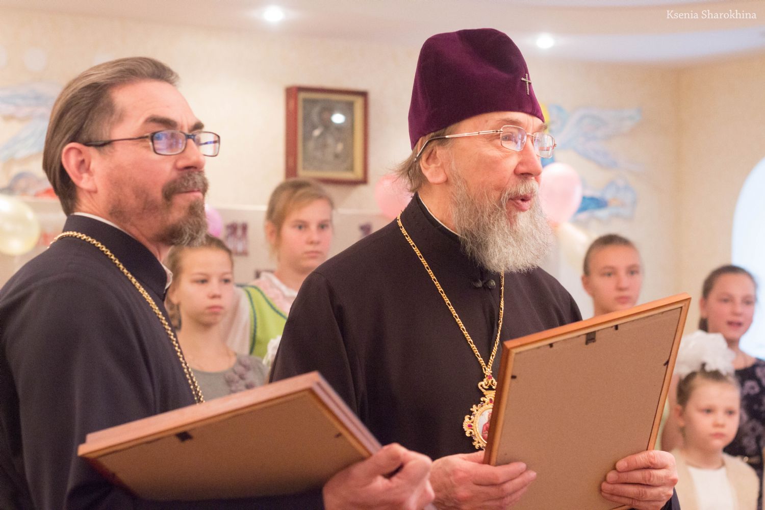 На празднике в этот день присутствовали настоятель Иоанно-Предтеченского храма протоиерей Сергий Ефремов, председатель епархиального отдела религиозного образования и катехизации иерей Даниил Гасников, иерей Константин Пашин и иеромонах Савва (Марков), окормлявшие школу ранее.