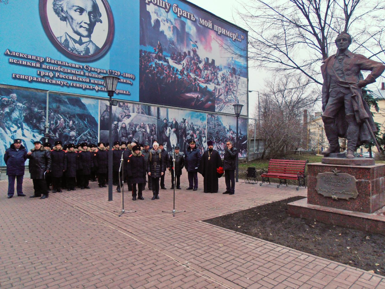 «Сегодня в этот знаменательный для России день, мы чествуем великого сына нашего славного Отечества, гениального стратега военной мысли, неутомимого патриота с горячим сердцем, А. В. Суворова…