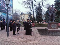 Председатель епархиального отдела по взаимодействию с Вооружёнными Силами иерей Сергий Кичигин, приветствуя гостей и участников митинга, произнёс следующие слова: