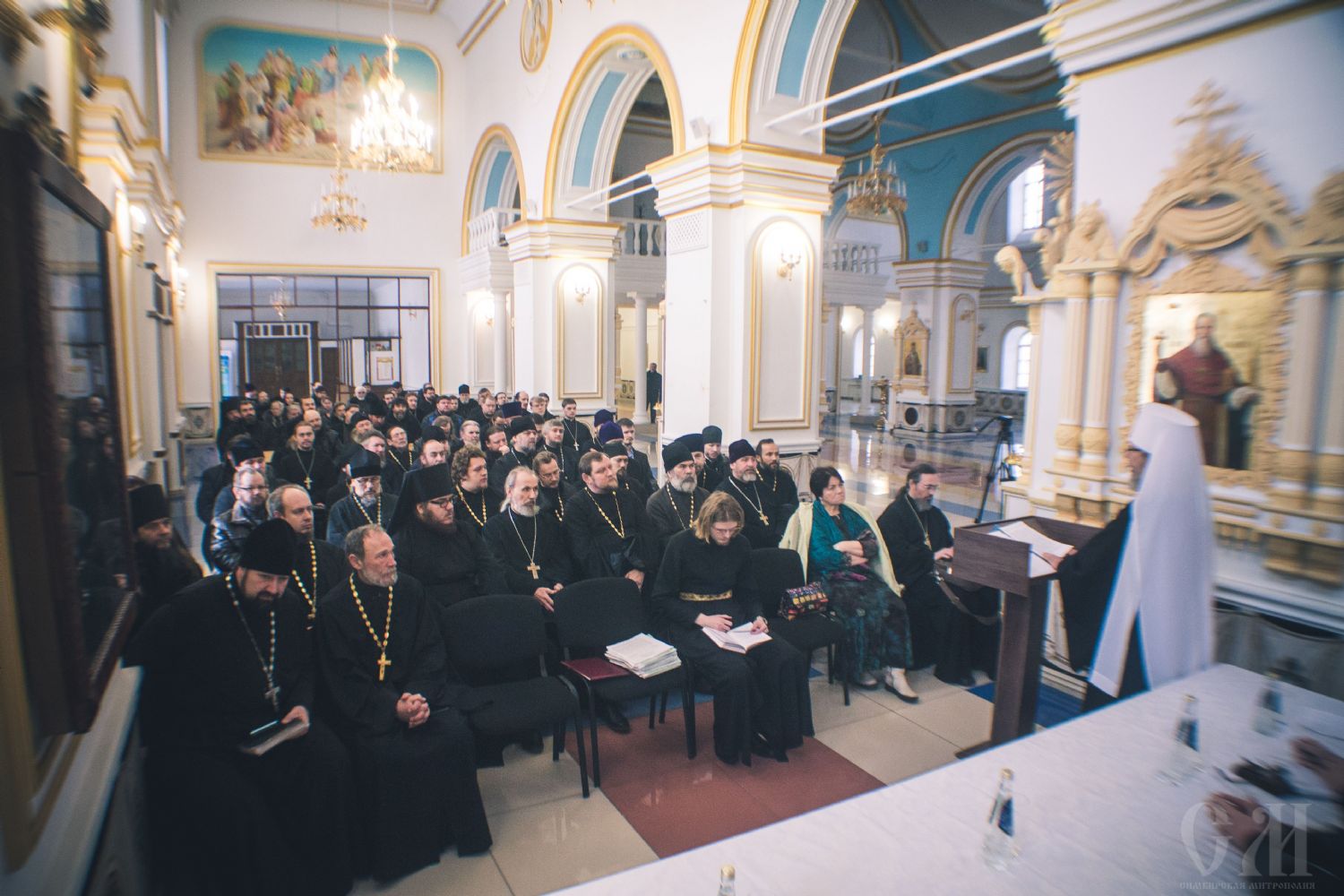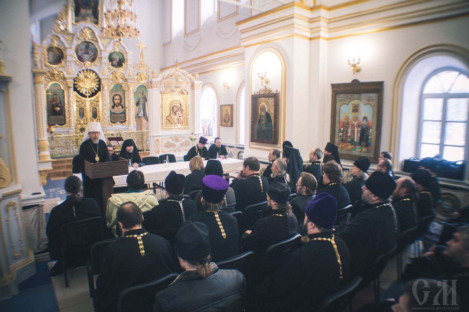 Началу совещания предшествовало возглашение вечной памяти приснопоминаемым митрополиту Проклу и протоиерею Алексию Скале, трудами которых был воздвигнут кафедральный храм. Совершив поминовение, собравшиеся священнослужители приступили к подведению итогов работы епархиальных структур в уходящем году и к обсуждению приоритетных направлений развития церковного служения.