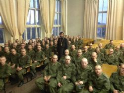 – В современных средствах массовой информации очень часто звучит призыв: «Бери от жизни все!». Такой призыв отвечает реалиям общества потребления, где во главу угла ставится удовлетворение своих личных, часто эгоистических, желаний. В таком мире не остаётся места для уважительного отношения к чувствам и интересам ближних, для уважительного отношения к обществу, в котором живёт человек. Едва ли воспитанный на девизе общества потребления молодой человек станет патриотом своего Отечества, едва ли он будет готов подражать своим дедам и прадедам, положившим жизни на алтарь Великой победы над фашизмом. Наши прадеды воспитывались в обществе, где были другие ценностные ориентиры. Некоторые из них не теряют своей актуальности в наши дни, и не потеряют ее и в будущем. Христианство, которое некоторым видится устаревшим учением о добре и любви, учит нас, ныне живущих, думать не только о себе любимом, но и о ближних своих, о своих друзьях, соседях, коллегах по работе, об обществе, о стране, в которой нам судил Бог родиться, о том, что принято называть громким словом «Родина», – сказал игумен Серафим в ходе беседы с курсантами.