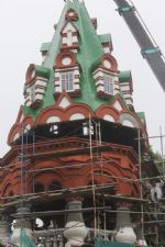 В конце июля строители успели установить на воссоздаваемую колокольню монастырского храма шатер. В августе - планируют водрузить купол и крест.