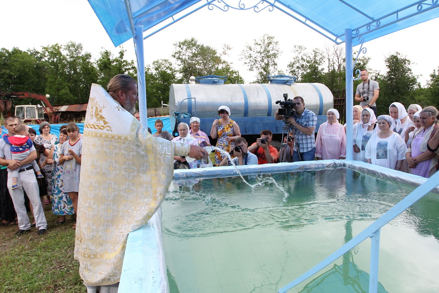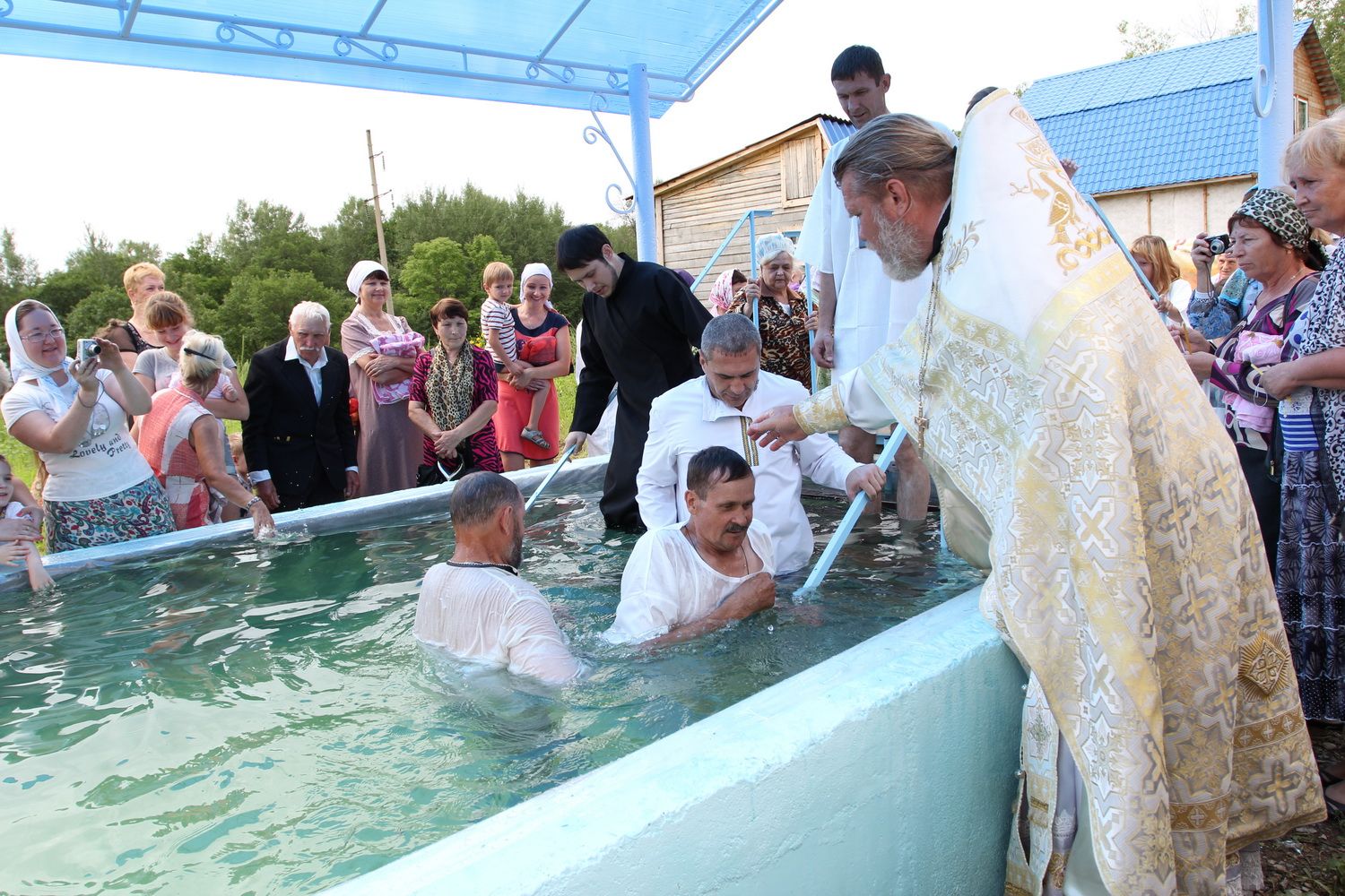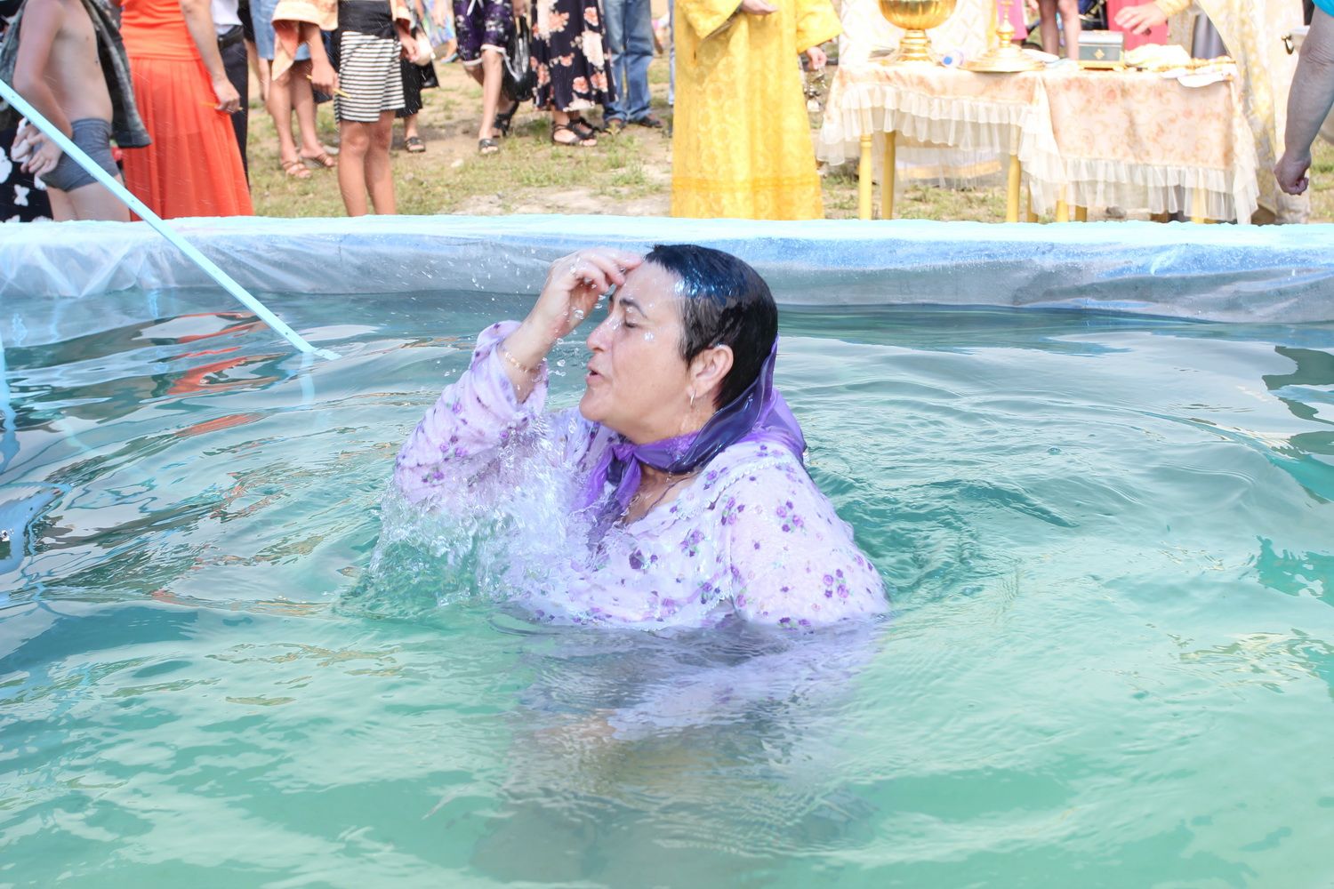 После проповеди клирики и прихожане храма прошли крестным ходом к купели под открытым небом, приготовленной для Таинства Крещения. Крещение в этот день совершили священники храма в честь иконы Божией Матери «Скоропослушница» настоятель протоиерей Сергий Сенник и иерей Сергий Ющенко.