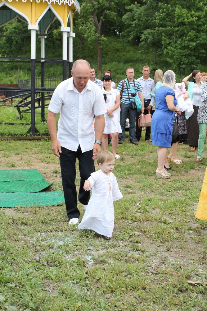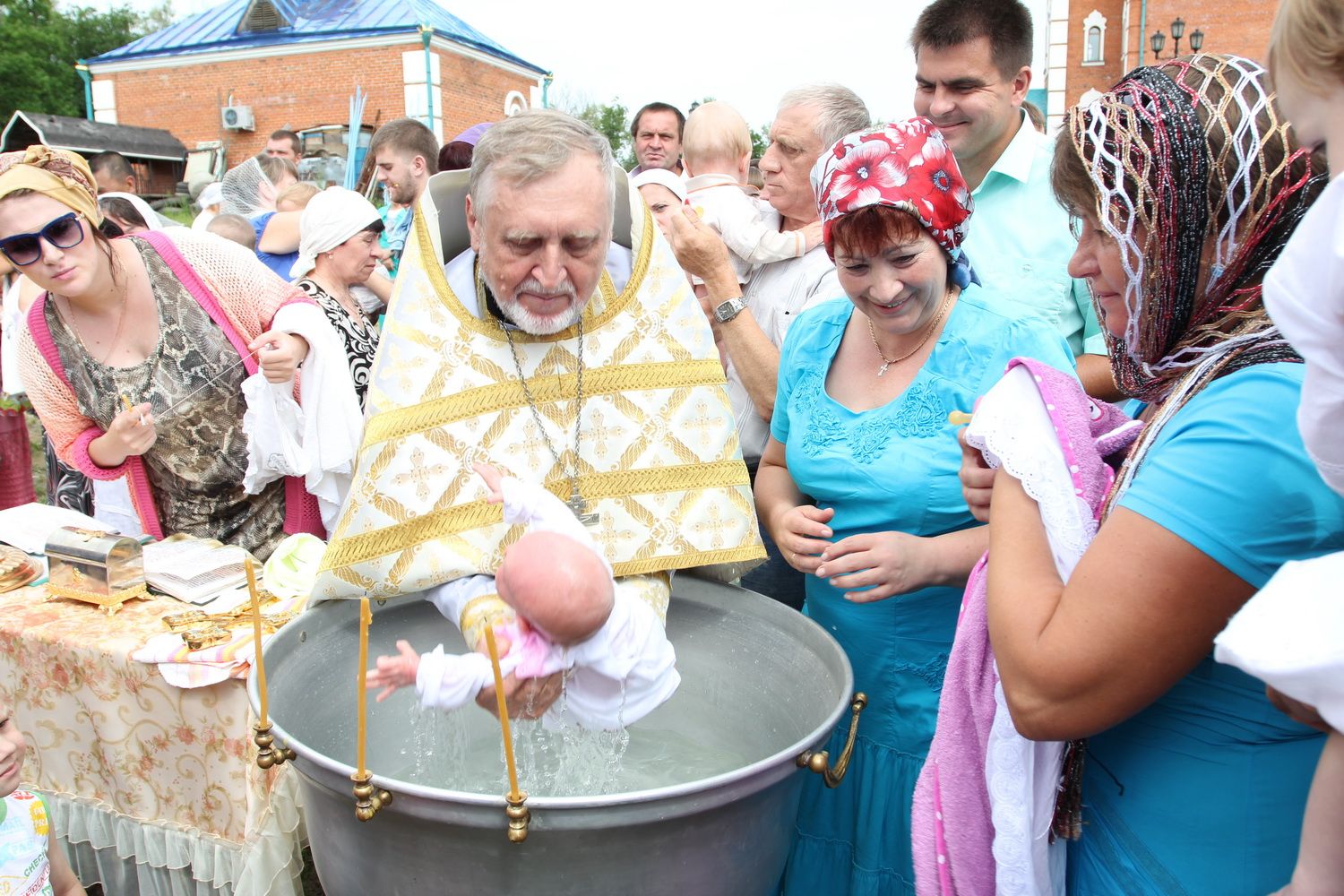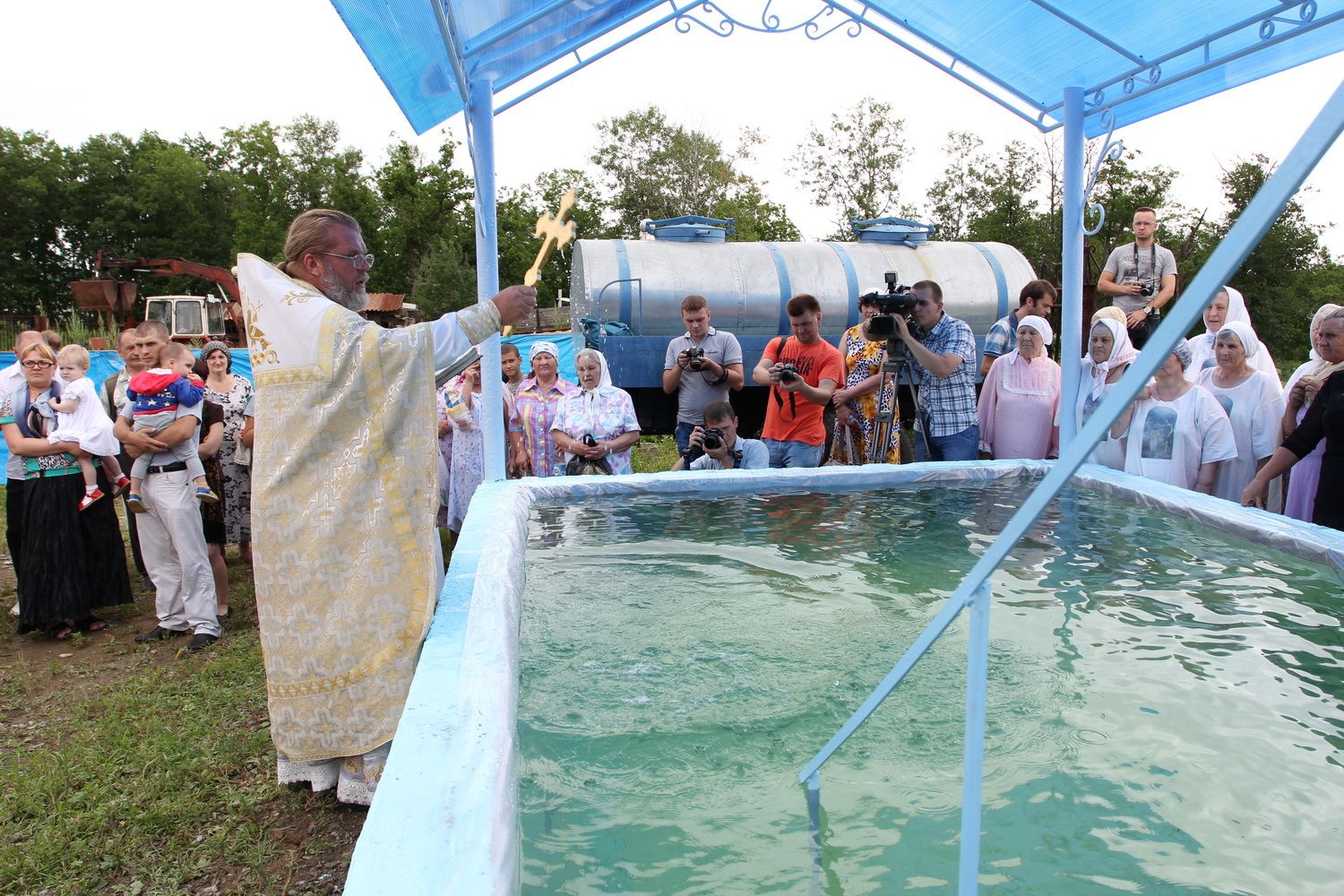 После проповеди клирики и прихожане храма прошли крестным ходом к купели под открытым небом, приготовленной для Таинства Крещения. Крещение в этот день совершили священники храма в честь иконы Божией Матери «Скоропослушница» настоятель протоиерей Сергий Сенник и иерей Сергий Ющенко.
