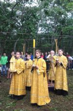 В Воскресенье, 8 сентября митрополит Владивостокский и Приморский Вениамин встретился с участниками форума и совершил под открытым небом на берегу Уссурийского залива Божественную литургию, за которой молились порядка 150 человек.