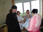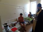 09.08.2013. В день памяти святого великомученика и целителя Пантелеимона иерей Георгий Москаленко, духовник Православной службы "Милосердие", клирик храма в честь Рождества Христова г. Находка, вместе с добровольцами поздравил с праздником медицинский персонал и пациентов отделений травматологии, нейрохирургии и хирургии Городской больницы г. Находка. Традиционно пациенты получили в подарок крестики и иконочки, а медицинский персонал – православную литературу.