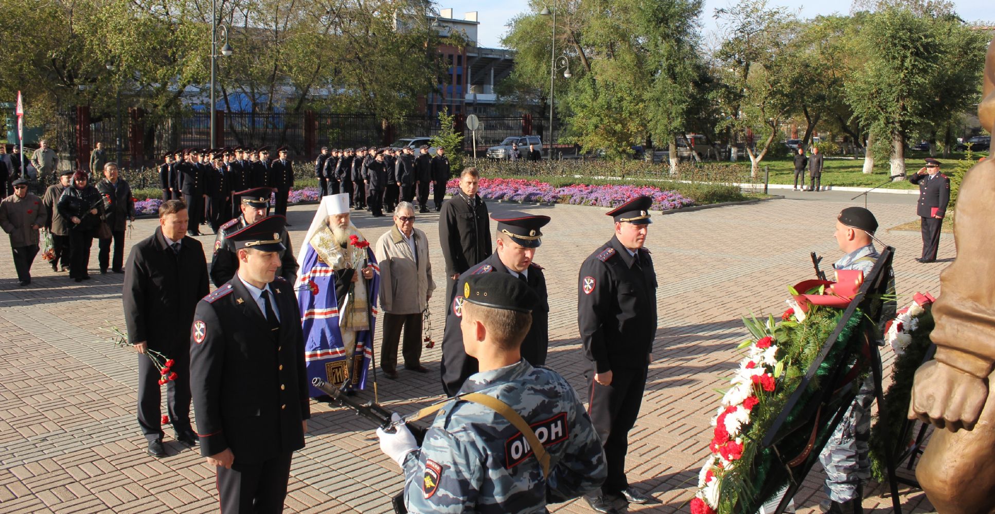 У мемориала сотрудникам УВД, погибшим при исполнении служебного долга, прошёл митинг, в котором приняли участие: вице-губернатор Приморского края по вопросам взаимодействия с федеральными органами государственной власти, информационной и внутренней политики Александр Иванович Ролик; начальник Управления МВД России по Приморскому краю Николай Николаевич Афанасьев; сотрудники строевых подразделений приморской полиции, ветераны, члены семей погибших сотрудников, журналисты средств массовой информации, представители общественных организаций.
