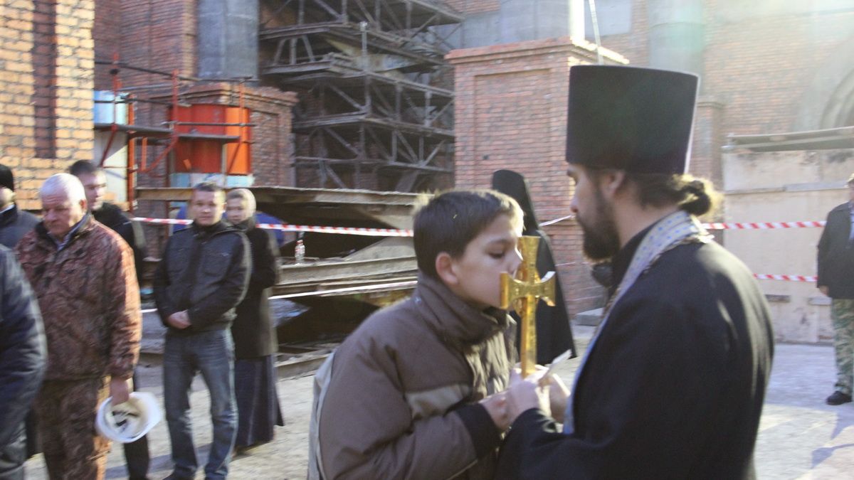 Владивосток. 15 ноября 2013 года, ранним утром, в строящемся Преображенском кафедральном соборе перед чудотворной Курской-Коренной иконой Божией Матери «Знамение» митрополит Владивостокский и Приморский Вениамин совершил молебен Пресвятой Богородице.