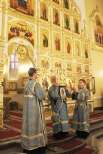 Владивосток. Утром 18 ноября 2013 года в Покровском кафедральном соборе состоялись торжественные проводы древней святыни. Митрополит Владивостокский и Приморский Вениамин возглавил в Покровском кафедральном соборе молебен перед Чудотворной Курской-Коренной иконой Божией Матери «Знамение».