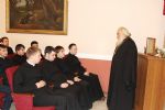 Гостей представил ректор Владивостокского Духовного училища митрополит Владивостокский и Приморский Вениамин. Также во встрече принимал участие викарий Владивостокской епархии епископ Уссурийский Иннокентий.