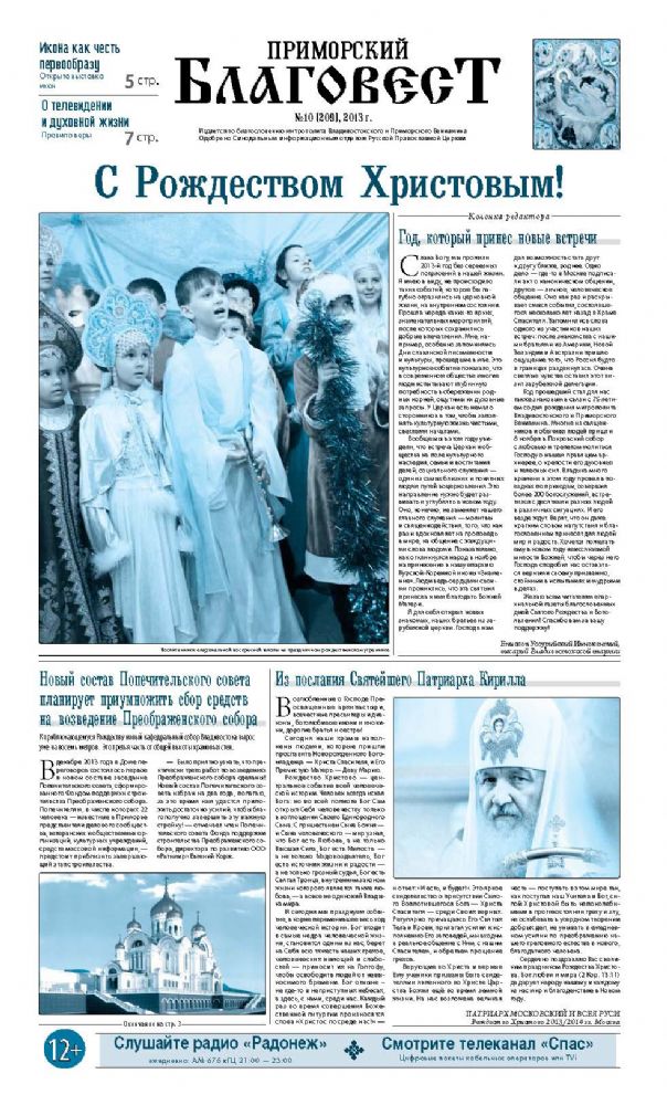 Владивосток. Вышел в свет новый номер газеты «Приморский благовест», посвященный зимним праздникам. Декабрьский выпуск соответствует добрым традициям епархиального издания и, в то же время, содержит ряд новогодних сюрпризов.