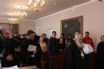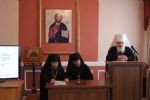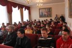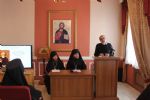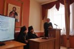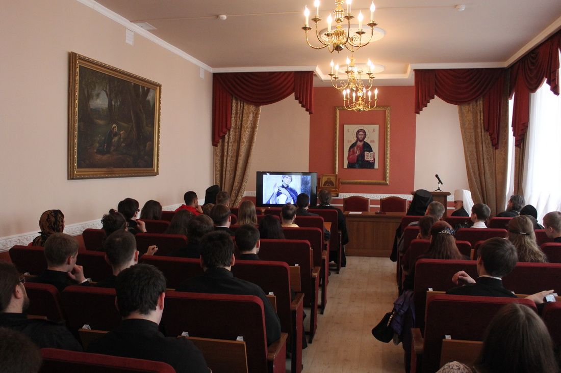 После докладов присутствующие посмотрели документальный фильм "Обитель Сергия. На последнем рубеже", рассказывающем о событиях смуты на Руси в начале XVII в. и осаде Троицкого монастыря польско-литовскими завователями.