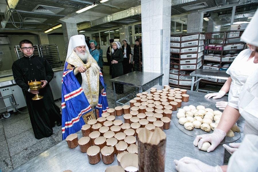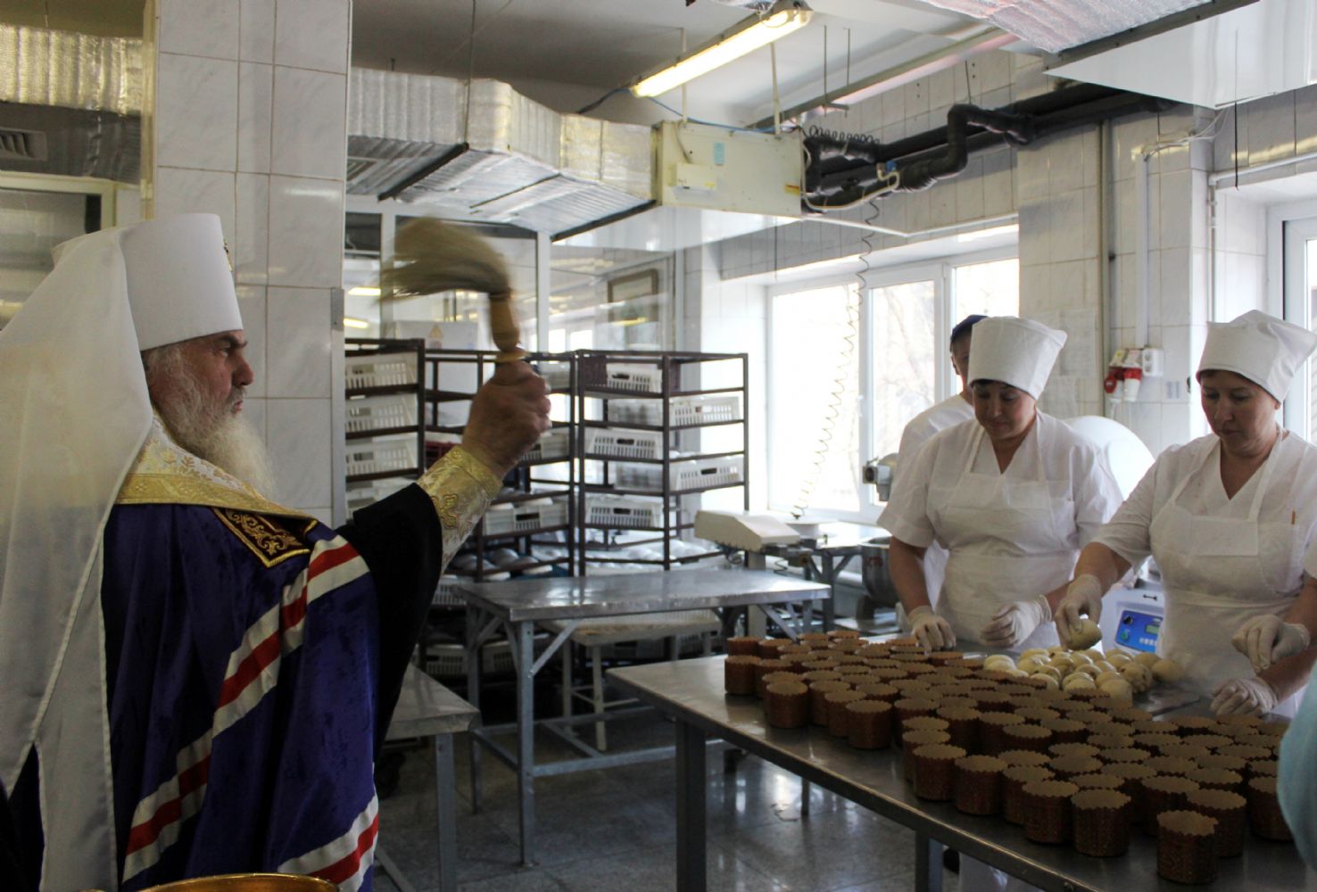 Владивосток. Перед Светлым Христовым Воскресением в храмах Владивостокской епархии совершается освящение куличей. Его Высокопреосвященство владыка Вениамин посетил православное предприятие ОАО «Владхлеб», где освятил куличи и сырьевую продукцию для их изготовления.