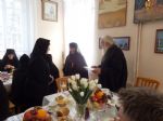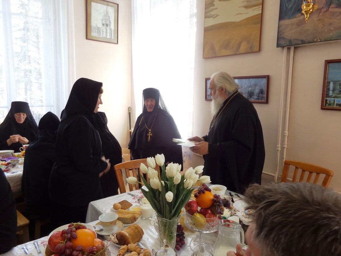 Сестры обители подарили всем пришедшим красочные открытки. По традиции праздник закончился трапезой на которую пригласили всех, кто присутствовал в монастыре. На трапезе настоятельница монастыря игумения Мария (Пономарева) вручила подарки всем, кто помогает обители.